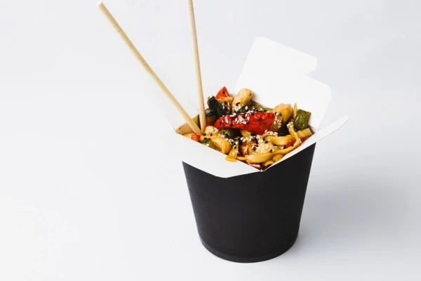 Лапша удон (пшеничная), болгарский перец, цуккини, лук красный, соевый соус, соус терияки, лук зеленый, кунжут, яйцо куриное